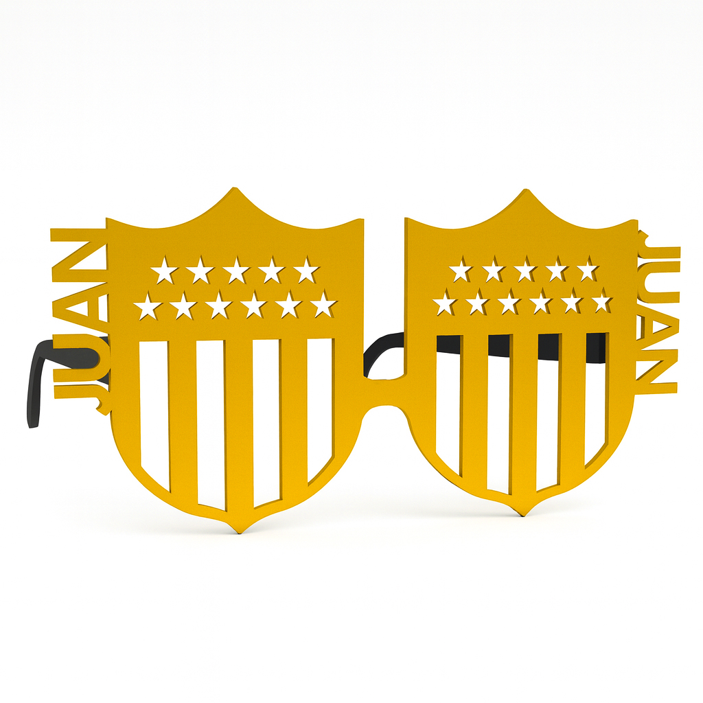 Este modelo de lentes personalizados está diseñado para destacar en cualquier celebración. Fabricado en PLA con impresión 3D y desarrollado por diseñadores profesionales, combina calidad, estilo y personalización total.