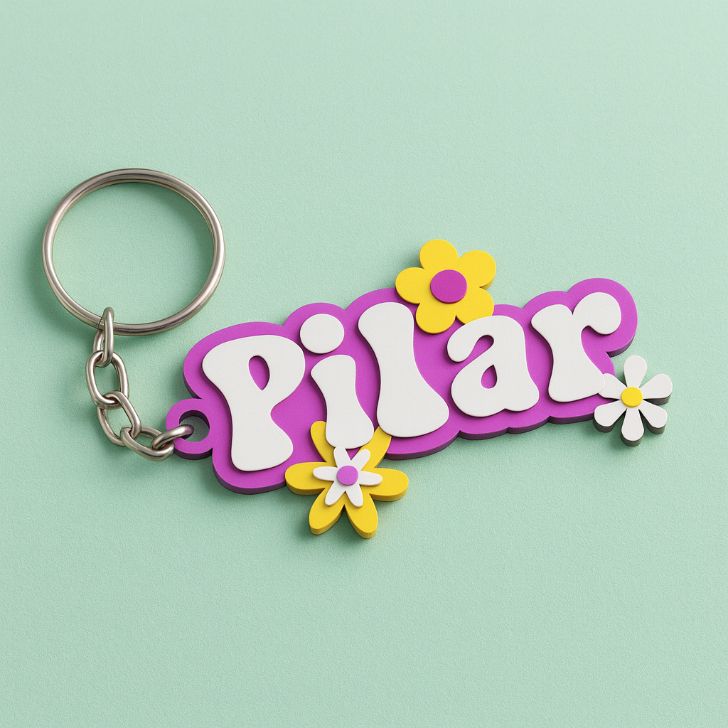 Dale un detalle inolvidable a tu evento con nuestros llaveros personalizados con diseño de Nombre y Flores. Fabricados en PLA de alta calidad, son perfectos para Cumpleaños que buscan un recuerdo original y sofisticado. Cada pieza incluye su argolla y cadena metálica.