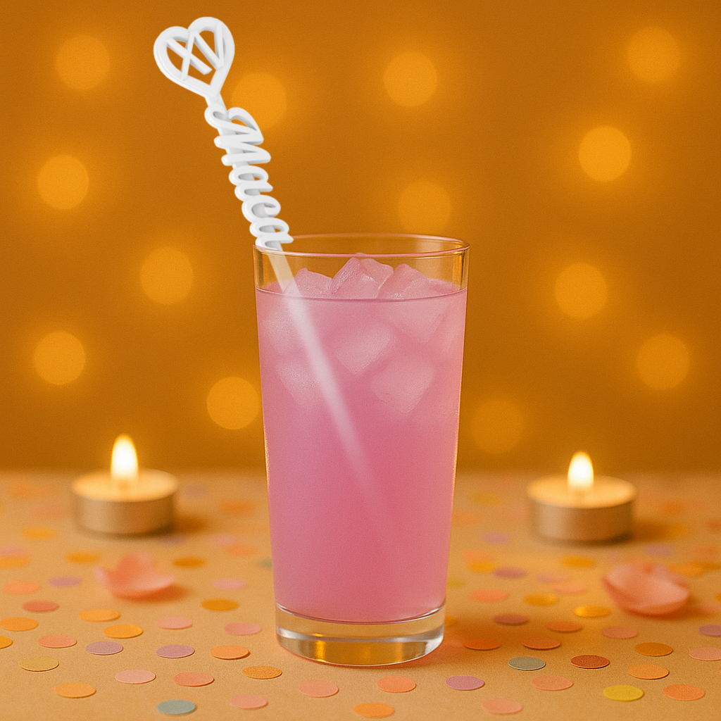 Agregá un toque único a tu evento con nuestros revolvedores personalizados en diseño XV Romano encriptado y Corazón. Fabricados en plástico PLA de alta calidad, son ideales para celebraciones de 15 años que buscan destacarse con detalles originales y elegantes.